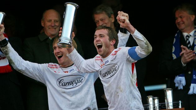 Brukbart fornøyd "Jonna" med kongepokalen på Ullevaal 12. november 2006. Raio Piiroja er ikke noe mindre fornøyd. Kong Harald og NFFs Sondre Kåfjord ser også ut til å kose seg med FFK-gull.