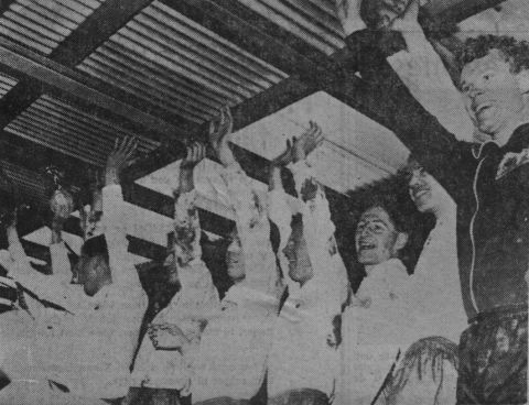 På Ullevaal etter finaleseieren i 1966. Fra høyre: Per