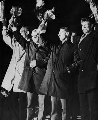 Fredrikstad etter NM-triumfen i 1966. Arne P til venstre