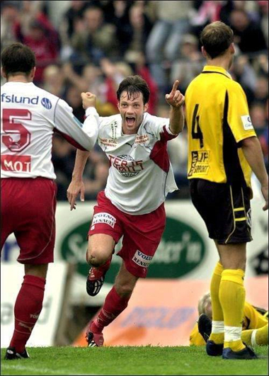 Ríkharður Daðason jubler for scoring hjemme mot Start i 2003.