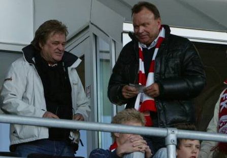 Henning Forsberg (til venstre) og Terje Høili på tribunen under
