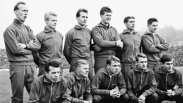 Lagbilde før NM-finalen i 1966. Thor Spydevold i midten foran. Foto: ukjent