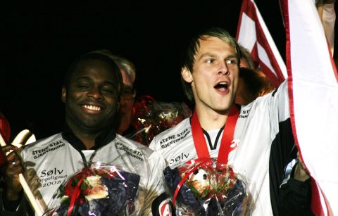Vidar Martinsen og Brian West feirer seriesølvet i 2008.